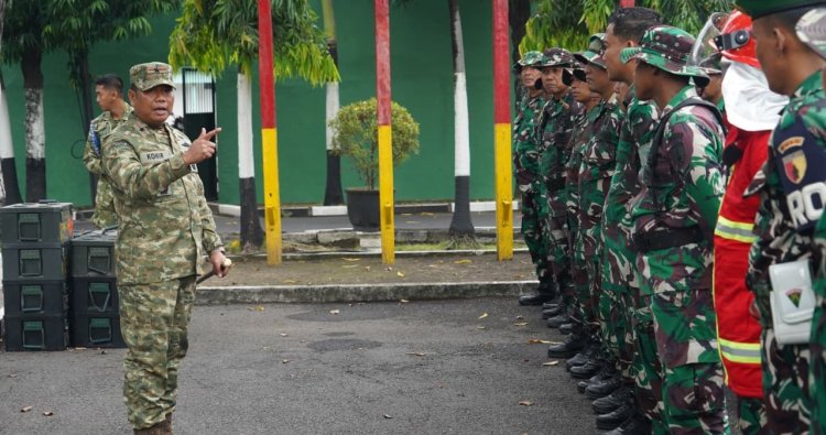 Surabaya – Komandan Korem 084/Bhaskara Jaya, Brigjen TNI Kohir, meninjau langsung kegiatan sosialisasi kesiapan gudang munisi dan bahan peledak sebagai bagian dari upaya meningkatkan standar keamanan dan profesionalisme satuan.